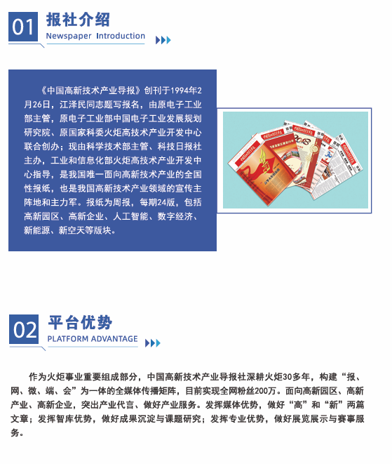 作為火炬事業(yè)重要組成部分,中國高新技術產(chǎn)業(yè)導報社深耕火炬30多年,構建“報、網(wǎng)、微、端、會”為一體的全媒體傳播矩陣,目前實現(xiàn)全網(wǎng)粉絲200萬。面向高新園區(qū)、高新產(chǎn)業(yè)、高新企業(yè),突出產(chǎn)業(yè)代言、做好產(chǎn)業(yè)服務。發(fā)揮媒體優(yōu)勢,做好“高”和“新”兩篇文章;發(fā)揮智庫優(yōu)勢,做好成果沉淀與課題研究;發(fā)揮專業(yè)優(yōu)勢,做好展覽展示與賽事服務。