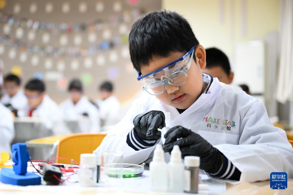 10月18日,學(xué)生在西安市新城區(qū)太華路小學(xué)參加科學(xué)實驗操作賽。