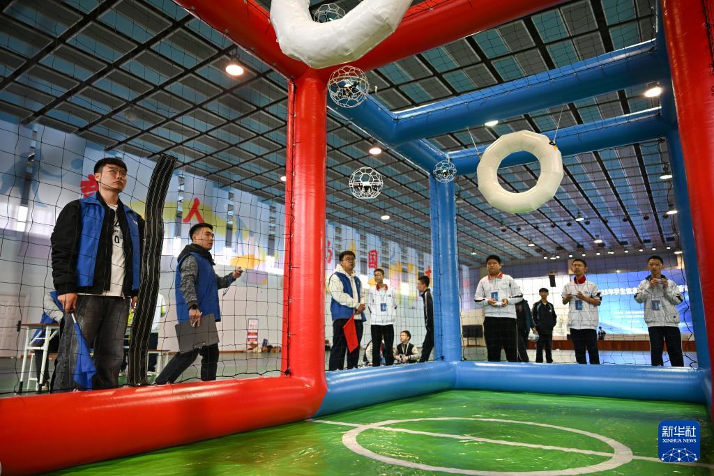 10月18日,學(xué)生在西安市新城區(qū)太華路小學(xué)參加多軸無人機足球?qū)官悺?/p>