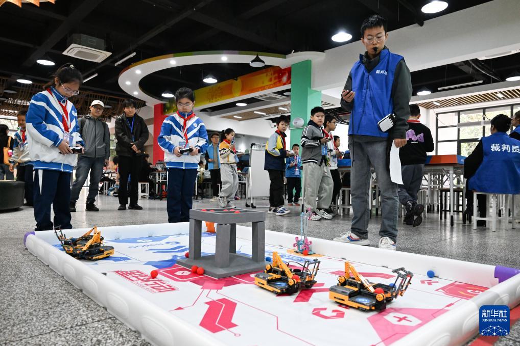 10月18日,學(xué)生在西安市新城區(qū)太華路小學(xué)參加機器人挑戰(zhàn)賽。