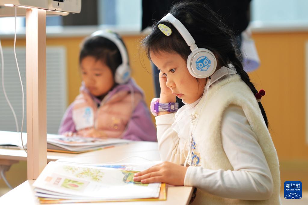 10月18日,小朋友在閱讀館體驗(yàn)AI閱讀。