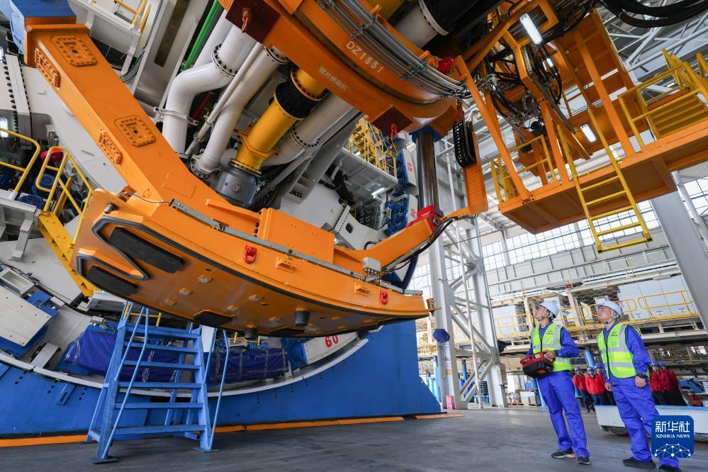10月24日,在鐵建重工長沙第一產(chǎn)業(yè)園,工人在調(diào)試“龍崗二號”盾構(gòu)機。