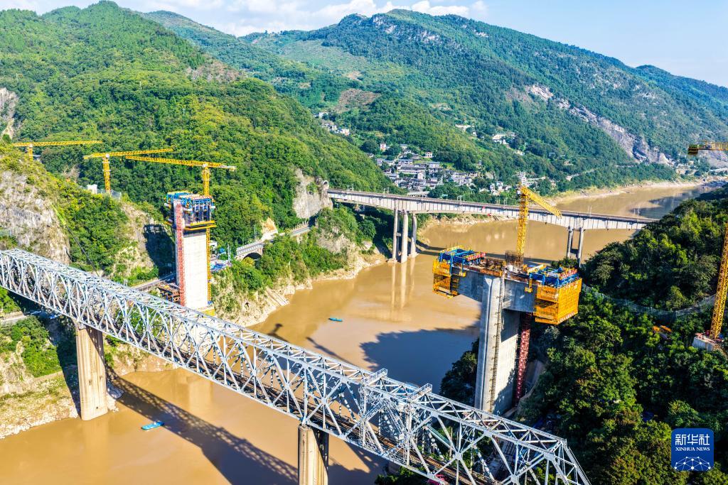 這是10月28日拍攝的西渝高鐵嘉陵江特大橋建設(shè)現(xiàn)場(chǎng)(無(wú)人機(jī)照片)。
