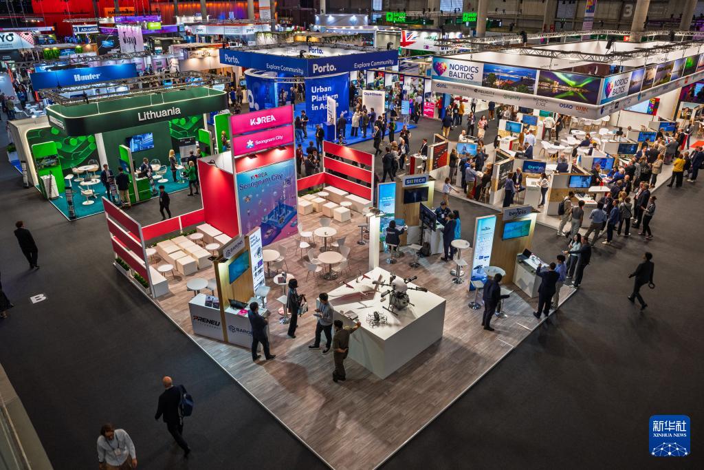 這是11月4日在西班牙巴塞羅那2025全球智慧城市大會上拍攝的參會展臺。
