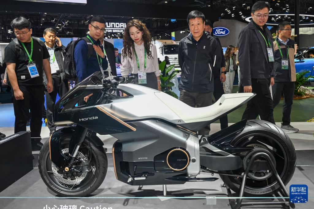 11月6日,在第八屆進博會汽車及智慧出行展區(qū)本田(Honda)展臺,觀眾在圍觀本田全新電動概念摩托車。