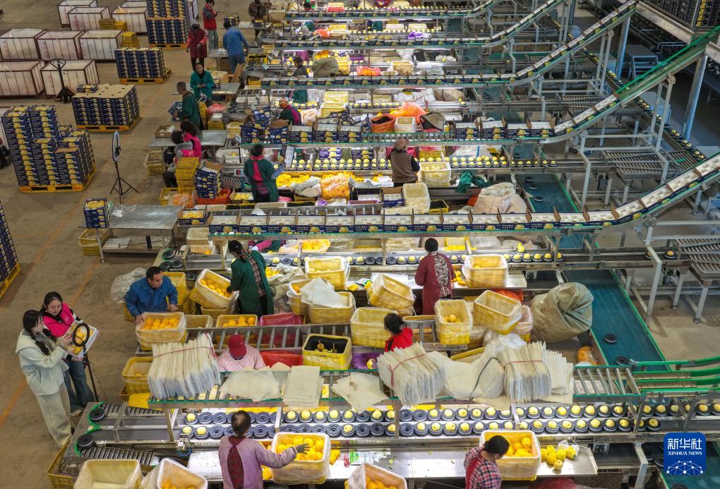 11月10日,工作人員在山東省榮成市城西街道一家企業(yè)分揀蘋果。