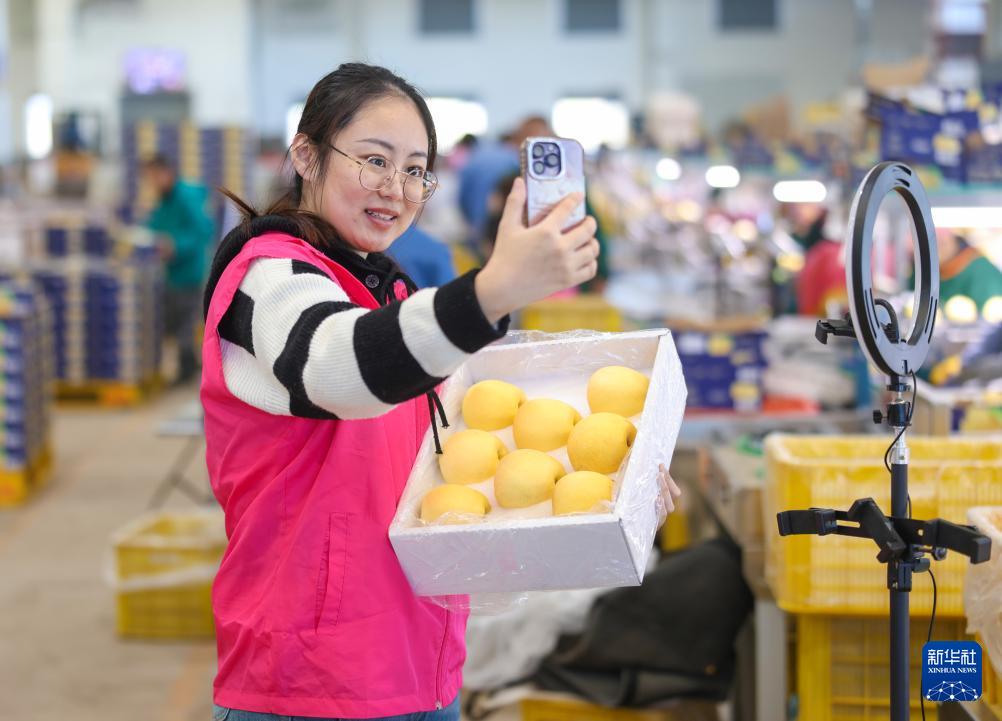 11月10日,主播在山東省榮成市城西街道直播帶貨。