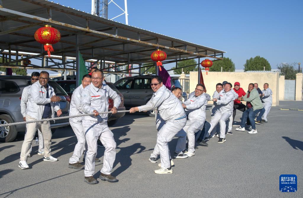 2024年2月10日,正值中國(guó)傳統(tǒng)節(jié)日春節(jié),負(fù)責(zé)建設(shè)科威特阿卜杜拉新城項(xiàng)目的中國(guó)能建葛洲壩集團(tuán)的中外職工在科威特杰赫拉省舉行拔河比賽。