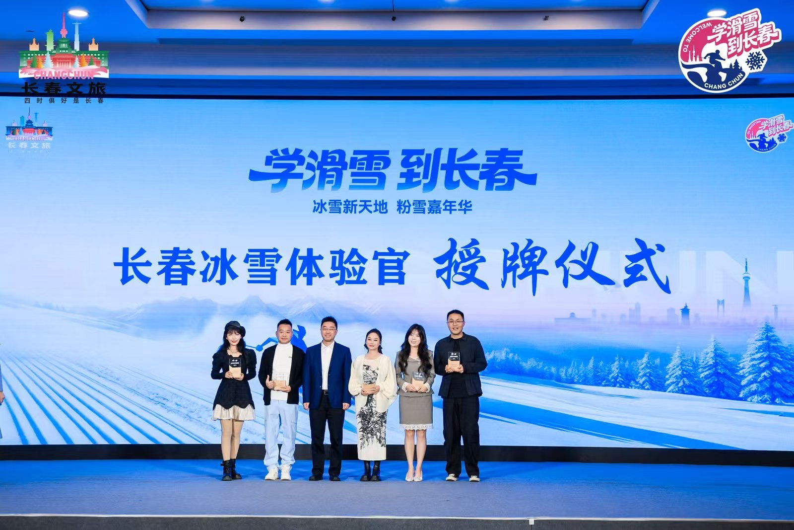 現(xiàn)場達(dá)人互動環(huán)節(jié)高潮迭起。長春文旅推薦官“雪餅猴”空降互動,生動推介長春冰雪資源;河森-SH環(huán)游中國、小馬達(dá)逛吃、李影Lily、蕾蕾流浪記、硬核肉臉等多位北京文旅達(dá)人被授予“長春冰雪體驗官”,他們將以短視頻、直播等方式深度推介長春冰雪;長春市動植物公園西游樂園演員閆東現(xiàn)場演唱了長春市群眾藝術(shù)館創(chuàng)作的歌曲《百年守望》,為推介會增添了濃厚的藝術(shù)氣息。