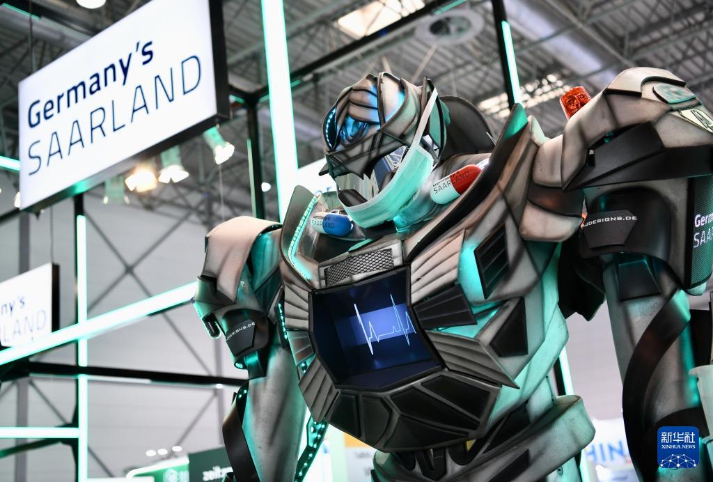 這是11月17日在德國杜塞爾多夫國際醫(yī)療器械設備展上拍攝的裝飾機器人。
