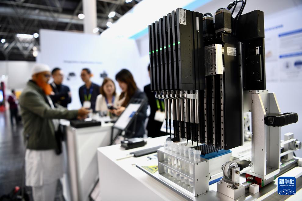 這是11月17日在德國杜塞爾多夫國際醫(yī)療器械設備展上拍攝的自動移液器。