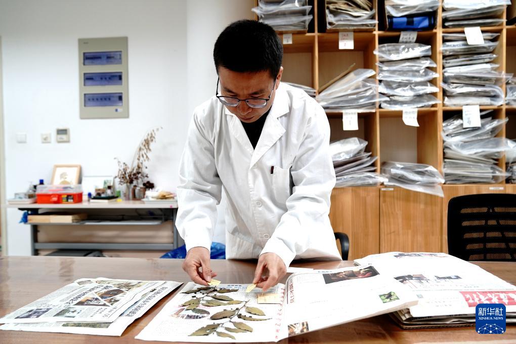 11月19日,工作人員在辰山中心裝訂植物臘葉標(biāo)本。