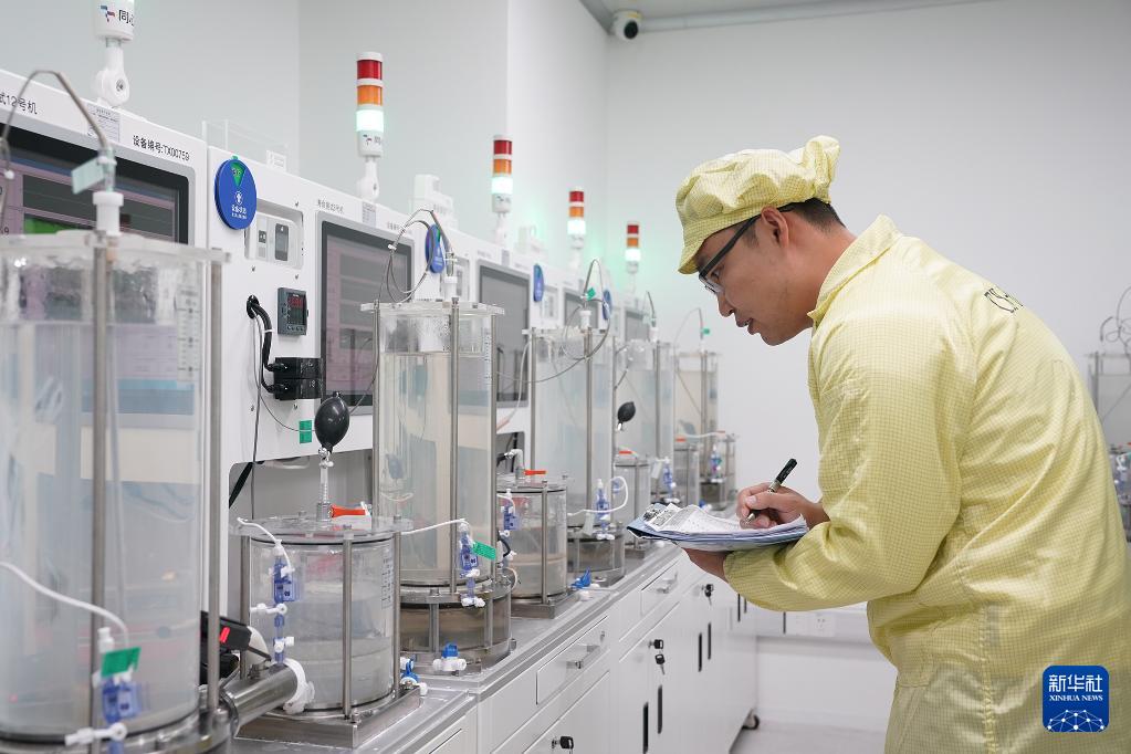 11月19日,在蘇州同心醫(yī)療科技股份有限公司,研發(fā)工程師在記錄人工心臟血泵的壽命測(cè)試數(shù)據(jù)。