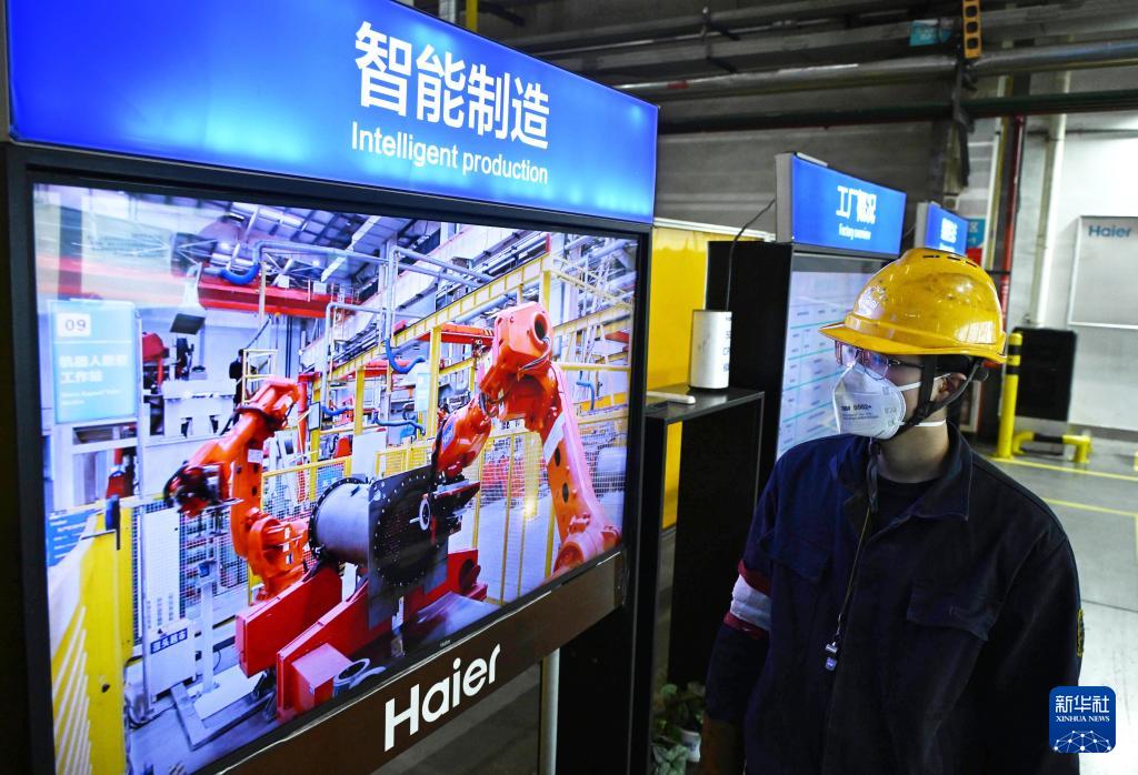 訪客在青島海爾中央空調互聯(lián)工廠展廳參觀(11月25日攝)。