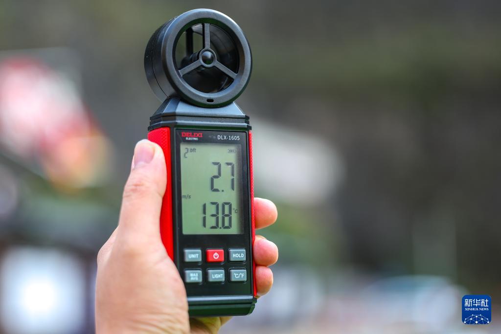 11月27日,在重慶市巫溪縣中梁鄉(xiāng)35千伏西土線(xiàn)改造現(xiàn)場(chǎng),現(xiàn)場(chǎng)工作人員利用風(fēng)速測(cè)量?jī)x監(jiān)測(cè)無(wú)人機(jī)起降的作業(yè)條件。