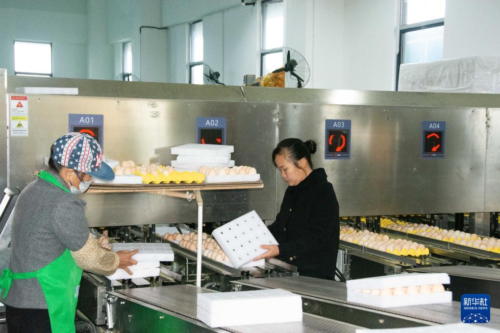 11月28日,在冷水灘區(qū)一雞蛋分揀中心,工作人員在給清洗殺菌后的雞蛋打包。