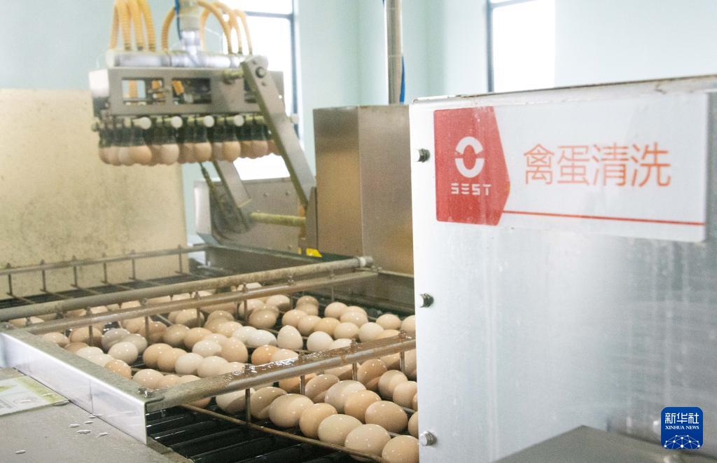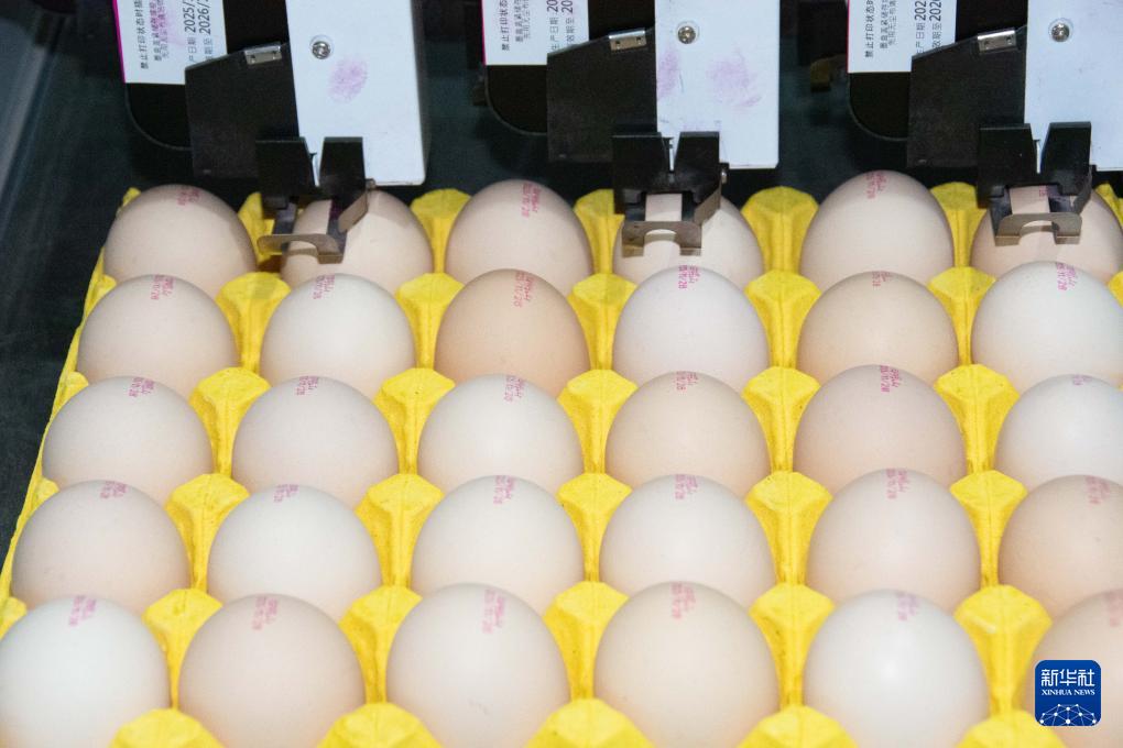 11月28日,在冷水灘區(qū)一雞蛋分揀中心,清洗殺菌后的雞蛋被打上生產(chǎn)日期和品牌標(biāo)志。