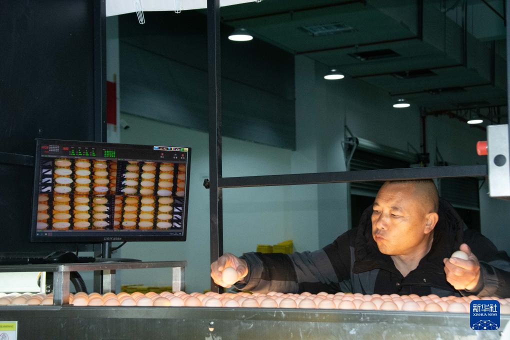 11月28日,在冷水灘區(qū)一雞蛋分揀中心,工作人員在人工檢測(cè)雞蛋。