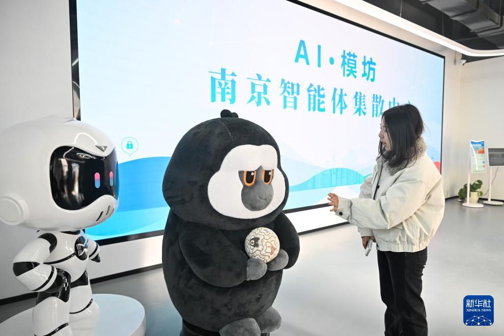 12月4日,在南京人工智能生態(tài)街區(qū)的“AI·模坊”南京智能體集散中心,一款華夏機(jī)器人在打招呼。