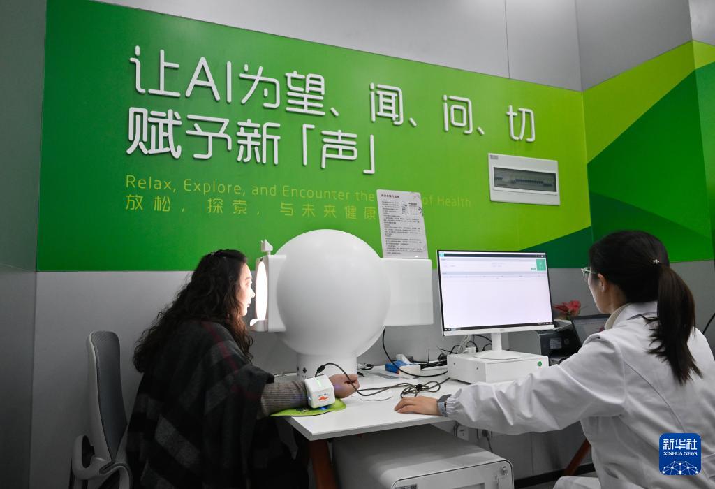 12月4日,在“AI·鏡界—南京人工智能生態(tài)街區(qū)”,一位女士在“AI診所”進(jìn)行健康檢測。