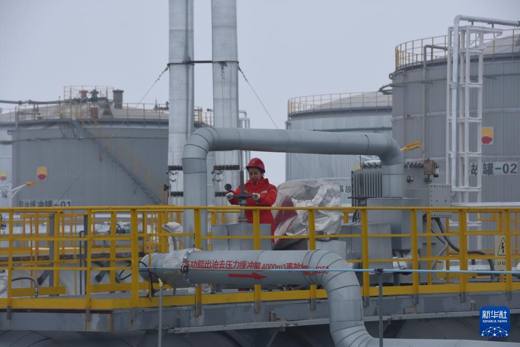 12月8日,在新疆吉木薩爾國(guó)家級(jí)陸相頁(yè)巖油示范區(qū),中國(guó)石油新疆油田頁(yè)巖油聯(lián)合站員工在巡檢設(shè)備。