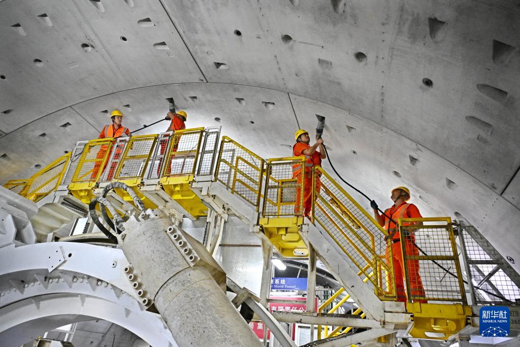 12月15日,中鐵十四局建設(shè)者在海平面下91米進(jìn)行管片拼裝作業(yè)。