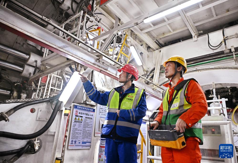 12月15日,中鐵十四局建設(shè)者在海平面下91米進(jìn)行施工作業(yè)。