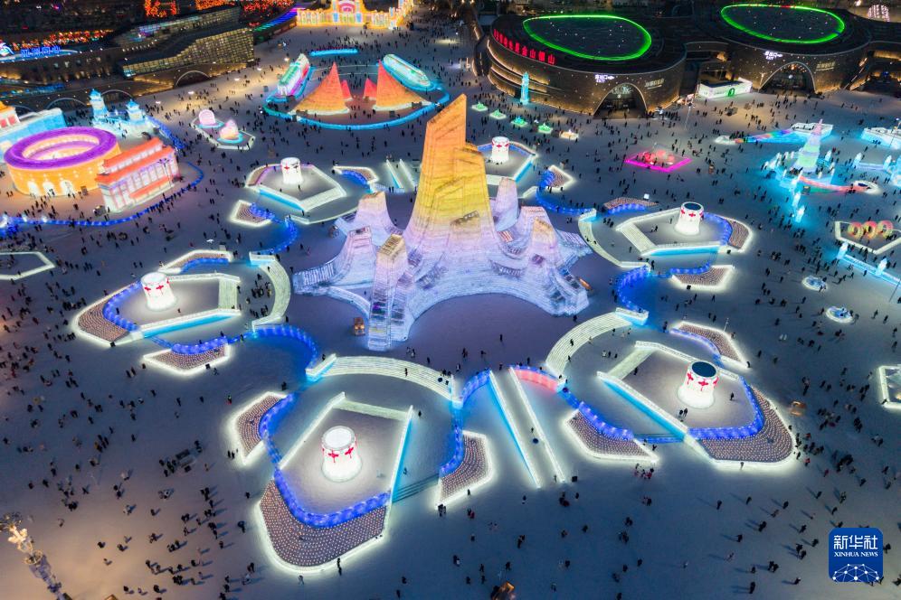 從高空俯瞰哈爾濱冰雪大世界園區(qū)(12月17日攝,無人機拼接照片)。