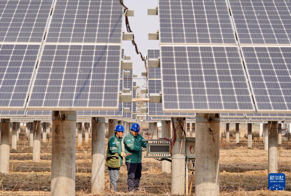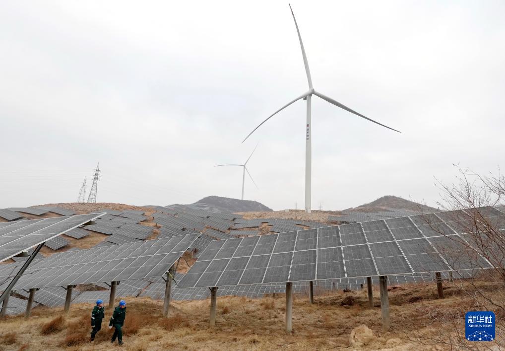 1月17日,國(guó)網(wǎng)贊皇縣供電公司的工人在轄區(qū)院頭鎮(zhèn)曹家莊村附近的“風(fēng)光互補(bǔ)”發(fā)電場(chǎng)巡檢并網(wǎng)線路。