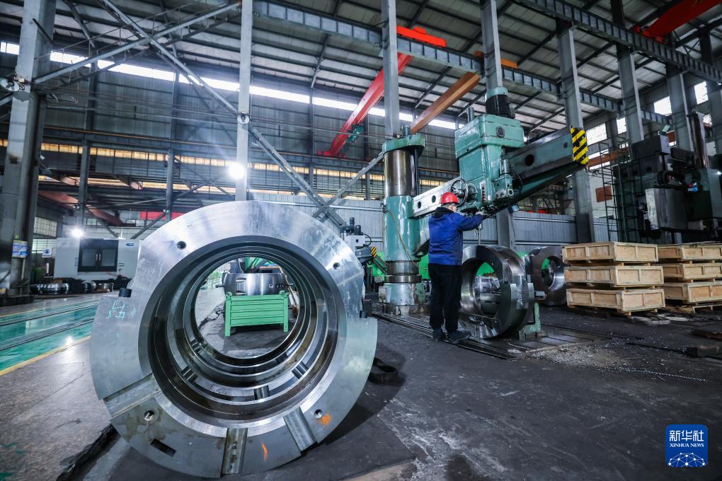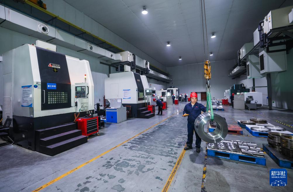 1月20日,在諸暨市璜山鎮(zhèn)的浙江申發(fā)軸瓦股份有限公司數(shù)字化車間內(nèi),工人操作設備加工軸承。