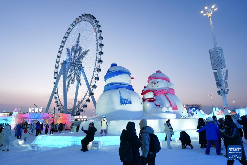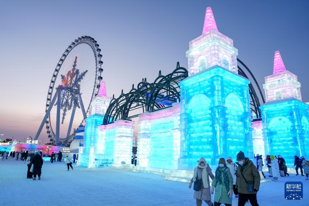 1月27日,人們在哈爾濱冰雪大世界園區(qū)內(nèi)游覽參觀。