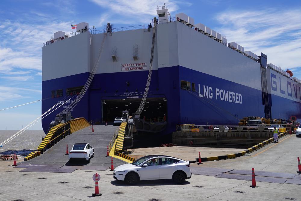 冬日,上海洋山特殊綜合保稅區(qū)內(nèi)的南港碼頭上,以LNG為燃料的汽車滾裝船“Glovis Success”裝載著3700多輛中國(guó)出口的汽車前往墨西哥的拉薩羅卡德納斯港。