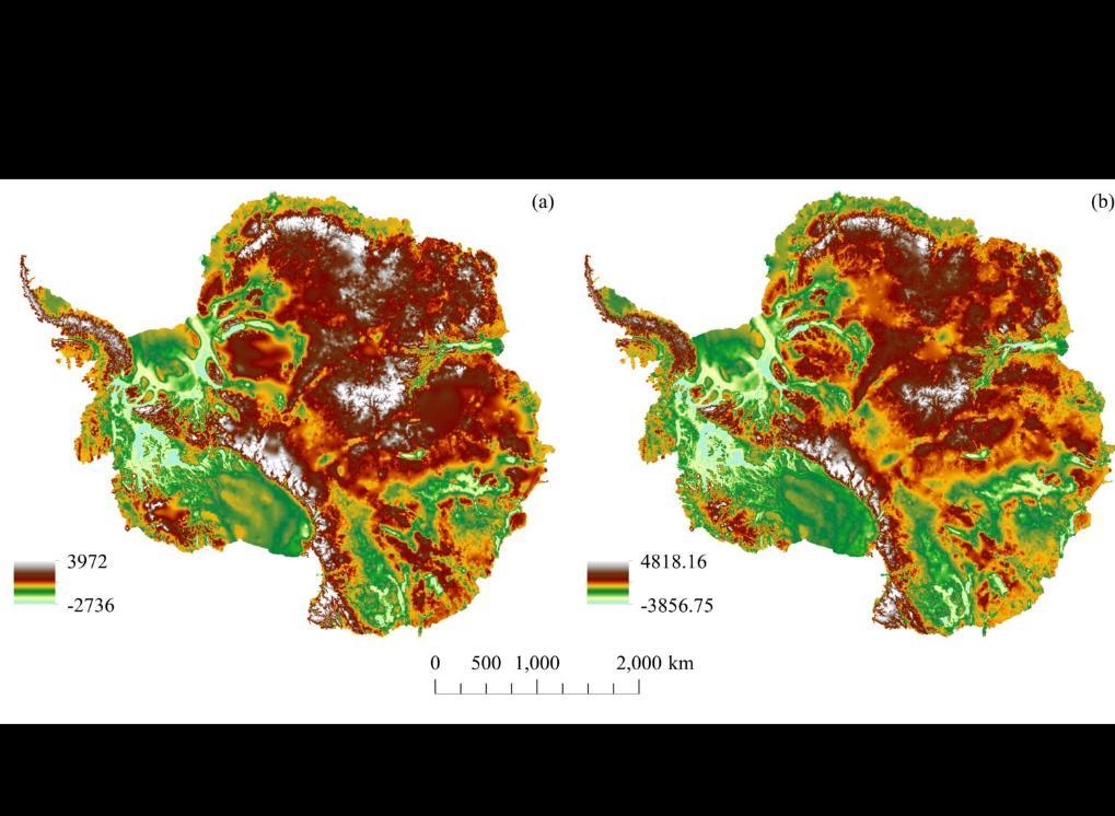 南極冰下地形高程圖。(中國(guó)極地研究中心供圖)