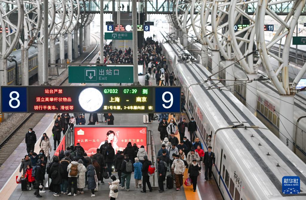 2月2日,旅客抵達南京火車站后下車出站。