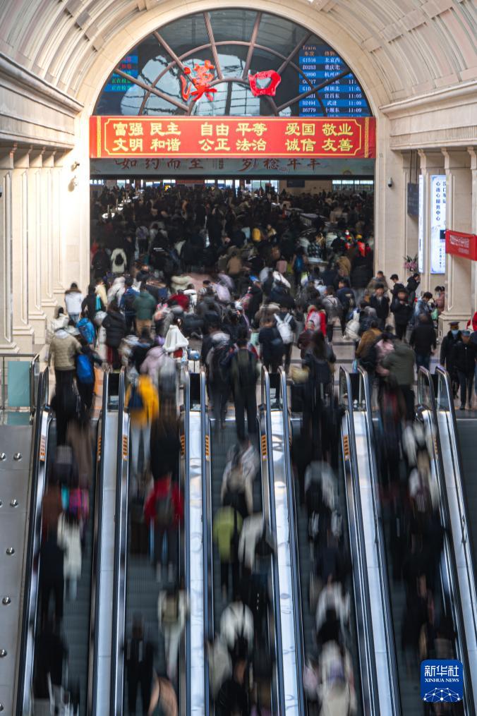 2月2日,在湖北省武漢市漢口火車站,旅客進站乘車。