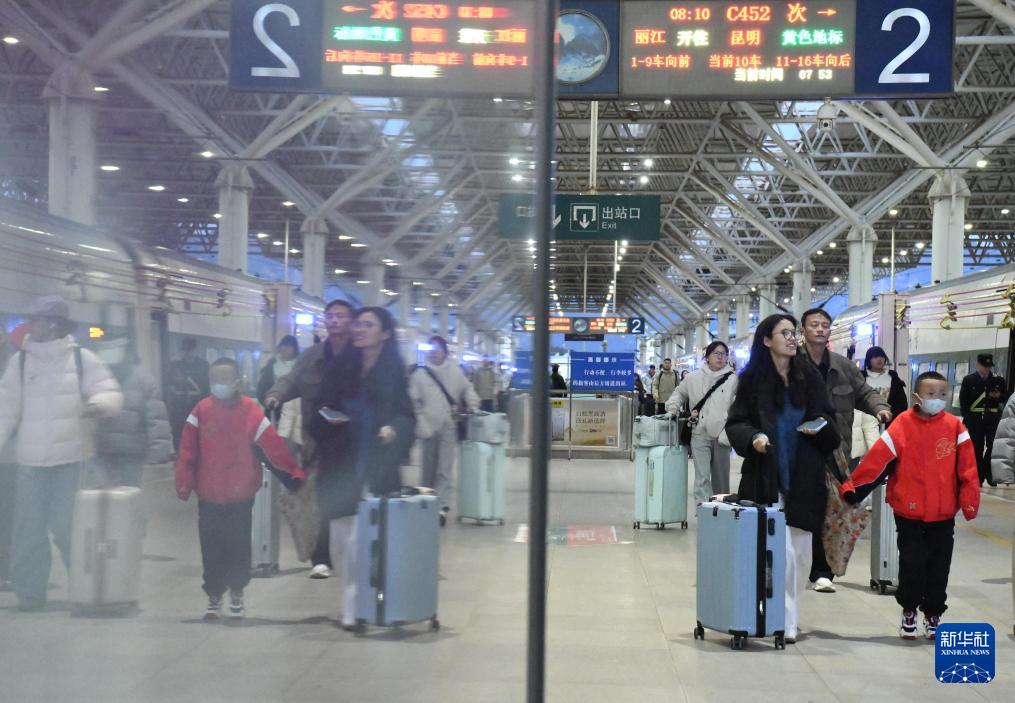 2月2日,旅客在云南麗江火車站乘車出行。