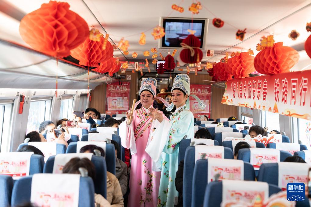 2月2日,演員在合肥南到合肥的G8341次列車上為乘客表演廬劇。