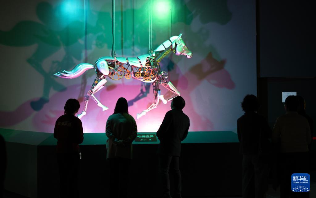 2月10日,參觀者在一個機械馬展品前駐足觀看。