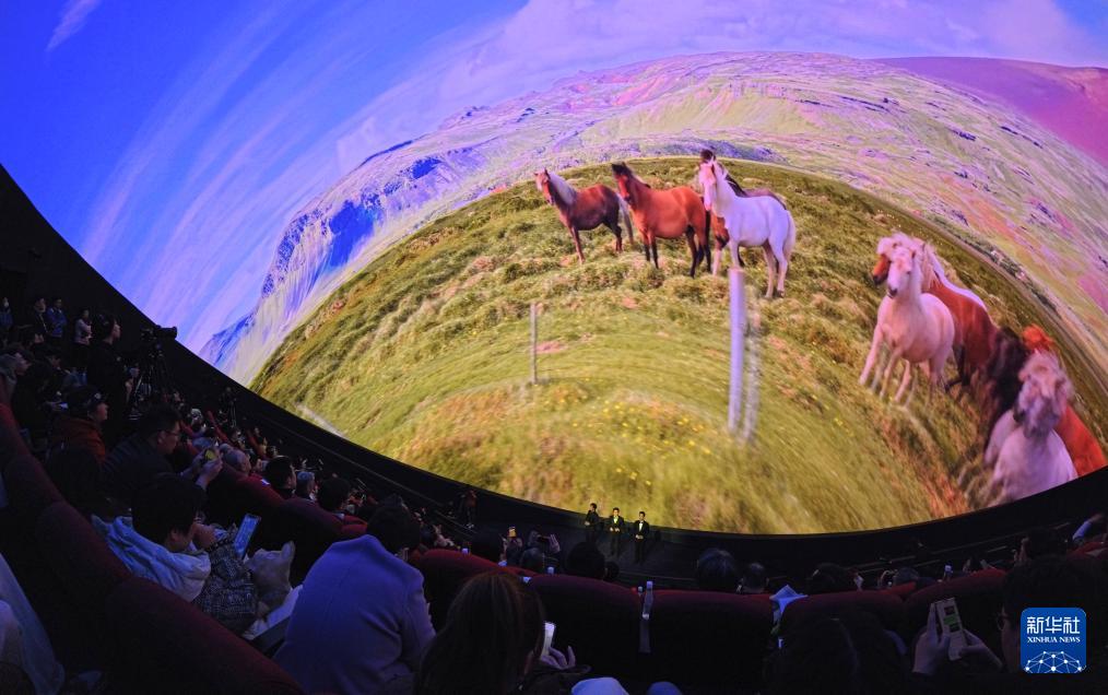 2月10日,參觀者在球幕影院內(nèi)觀看“奇驥奔騰:馬的詩意行進”主題音樂會。