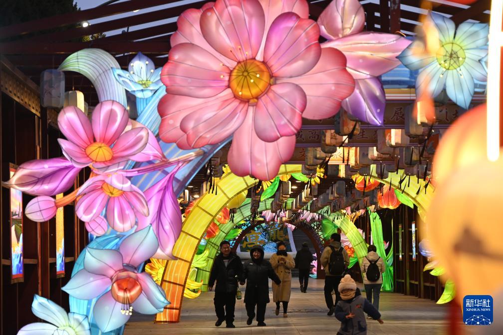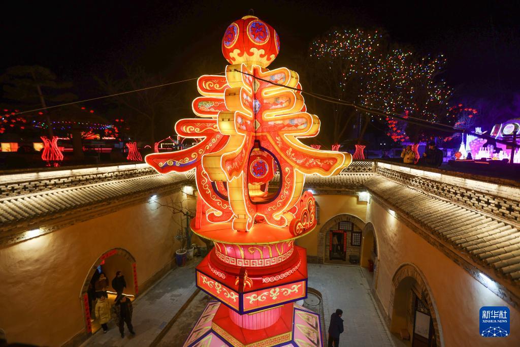 2月10日,人們在河南省三門峽市陜州區(qū)地坑院景區(qū)欣賞花燈。