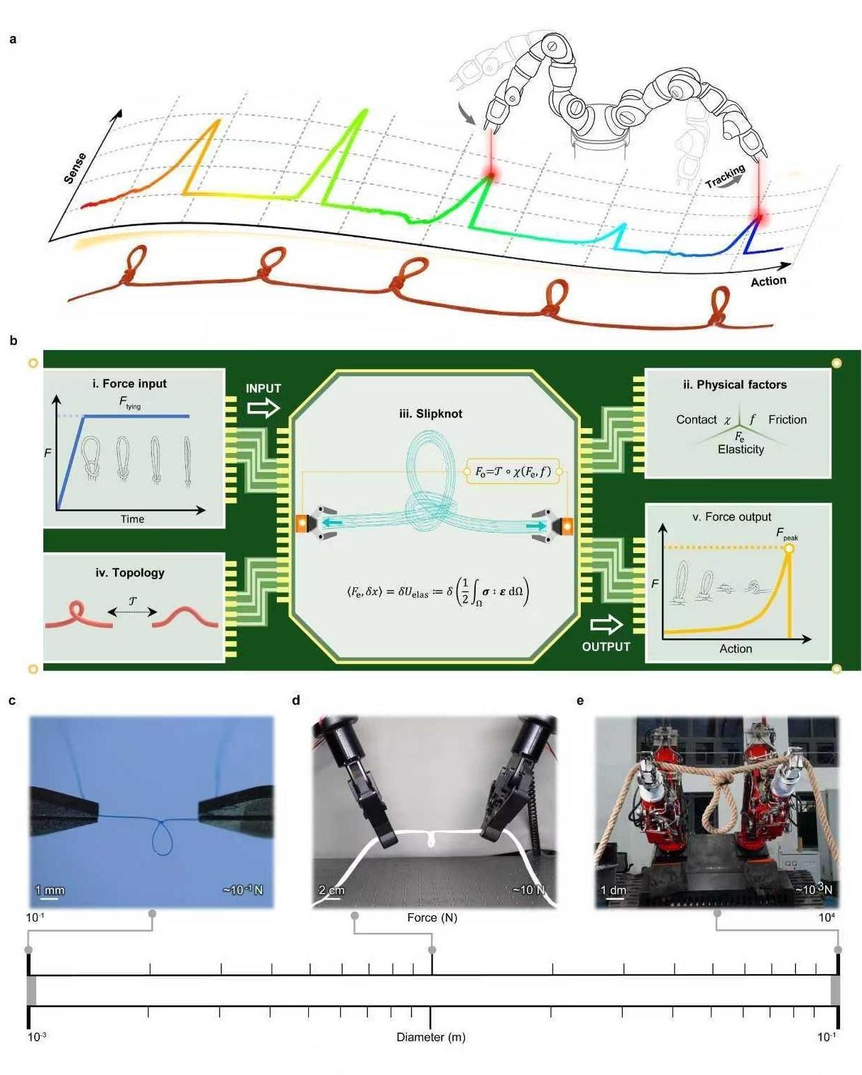 外科手術(shù)中傷口縫合的打結(jié)是項(xiàng)精細(xì)活。結(jié)打松了,難以有效止血;結(jié)打緊了,容易斷線或損壞器官組織。中國(guó)科學(xué)院院士、浙江大學(xué)航空航天學(xué)院交叉力學(xué)中心主任楊衛(wèi)團(tuán)隊(duì)和中國(guó)科學(xué)院院士、浙江大學(xué)醫(yī)學(xué)院附屬邵逸夫醫(yī)院院長(zhǎng)蔡秀軍團(tuán)隊(duì),歷時(shí)三年開展交叉研究,闡明了“基于活結(jié)的力學(xué)傳導(dǎo)機(jī)制”,并創(chuàng)新性研發(fā)出“Sliputure(活結(jié)智能縫線)”,成功將其應(yīng)用于外科縫合,解決了機(jī)器人手術(shù)“力盲”缺陷。此項(xiàng)研究于北京時(shí)間11月27日以封面文章的形式登上國(guó)際學(xué)術(shù)期刊《自然》。