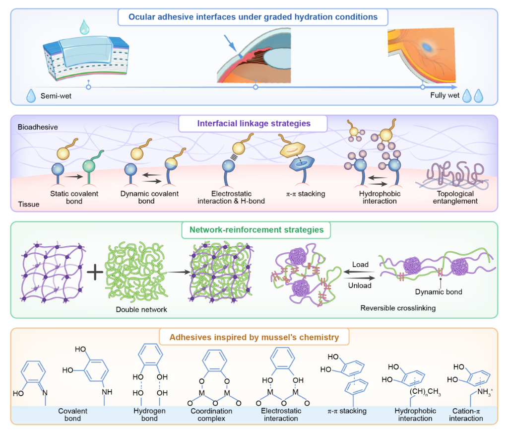 圖為眼部粘附機(jī)制與材料設(shè)計(jì)策略示意圖。新華社發(fā)