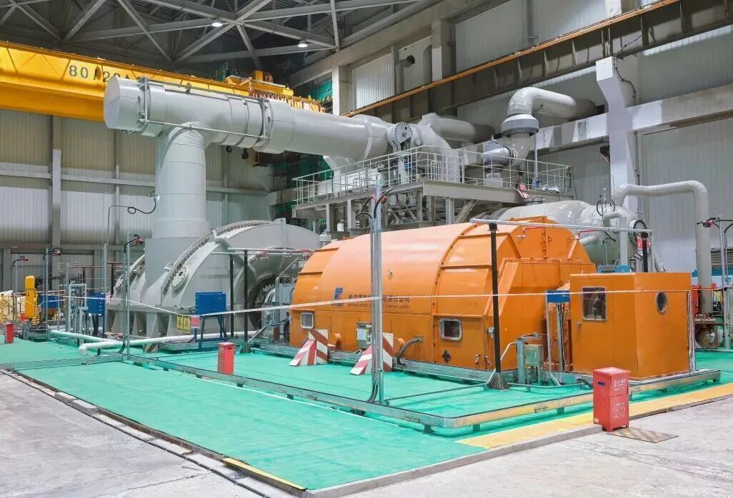 此次沖轉(zhuǎn)成功的汽輪發(fā)電機組,汽輪機采用哈電集團汽輪機公司自主研制的125兆瓦等級凝汽式、單軸、單背壓、過熱蒸汽汽輪機組,創(chuàng)新應(yīng)用先進的高壓N+1軸承支撐等先進技術(shù),顯著提升運行效率與安全可靠性;高壓模塊實現(xiàn)整體發(fā)運、現(xiàn)場快速安裝,凝汽器采用模塊化設(shè)計,充分體現(xiàn)小型堆“小型化、模塊化、一體化”的技術(shù)特征。汽輪發(fā)電機采用哈電集團電機公司自主研制的空冷汽輪發(fā)電機,創(chuàng)新應(yīng)用全空冷技術(shù),定子采用內(nèi)、外機座,鐵芯與機座采用彈簧板隔振結(jié)構(gòu),隔離定子鐵芯自身的振動,降低機座振動幅值;定子絕緣系統(tǒng)采用多膠模壓絕緣系統(tǒng),適合于小型堆長期經(jīng)濟可靠運行。