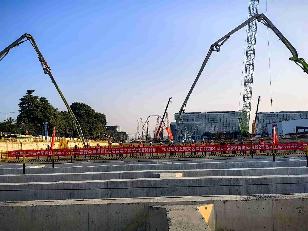 此次封頂?shù)?號基坑位于深圳寶安國際機場附近,建設(shè)條件復(fù)雜、技術(shù)難度極高,是深江鐵路關(guān)鍵工程?;尤L285米,最寬處超51米,開挖深度達26.64米,總澆筑混凝土方量1570立方米,施工安全、質(zhì)量與進度直接影響全線建設(shè)推進。