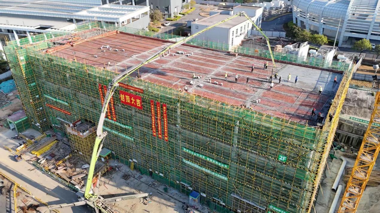1月15日凌晨4點(diǎn),高能質(zhì)子實(shí)驗(yàn)廳屋面樓板完成澆筑。至此,中國(guó)散裂中子源二期工程所有單體建筑全部實(shí)現(xiàn)封頂。