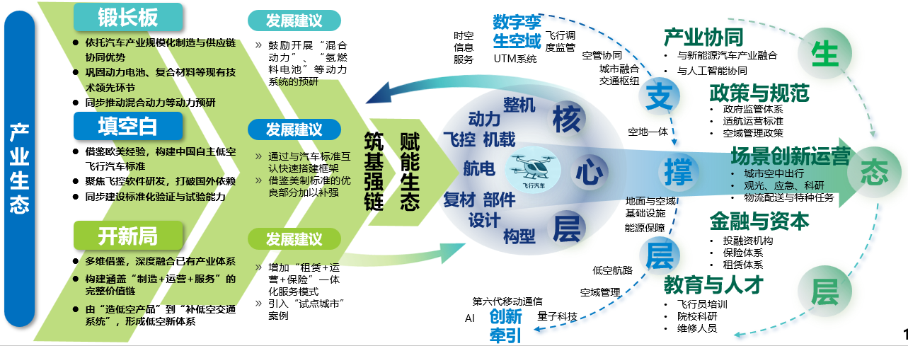 提升飛行汽車產業(yè)體競爭力,必須推動產業(yè)從“造產品”向“造體系”轉變,其核心路徑在于“筑基強鏈”與“賦能生態(tài)”。