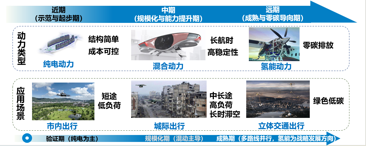 近期:以純電為主,優(yōu)先攻克“能飛、能管、能運營”的基礎門檻,服務于短途低負荷場景。