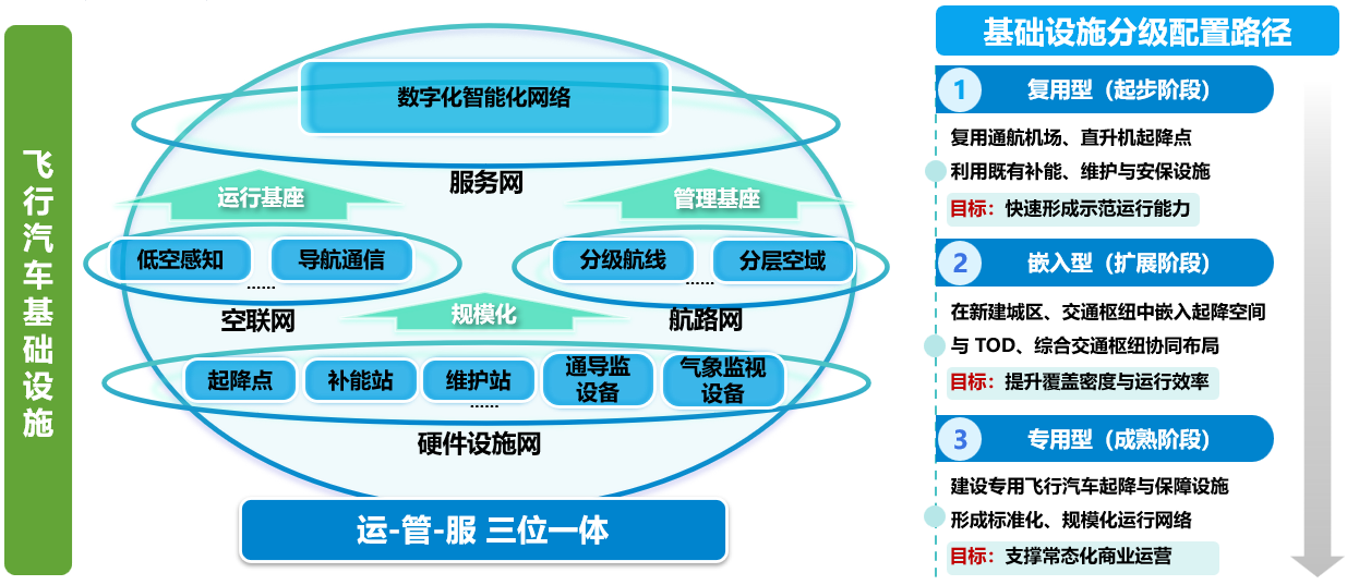 成熟階段:建設專用垂直起降場,構建“大型樞紐+中型站點+微型節(jié)點”的分層網絡,并通過數(shù)字化平臺支撐運-管-服一體化運行。
