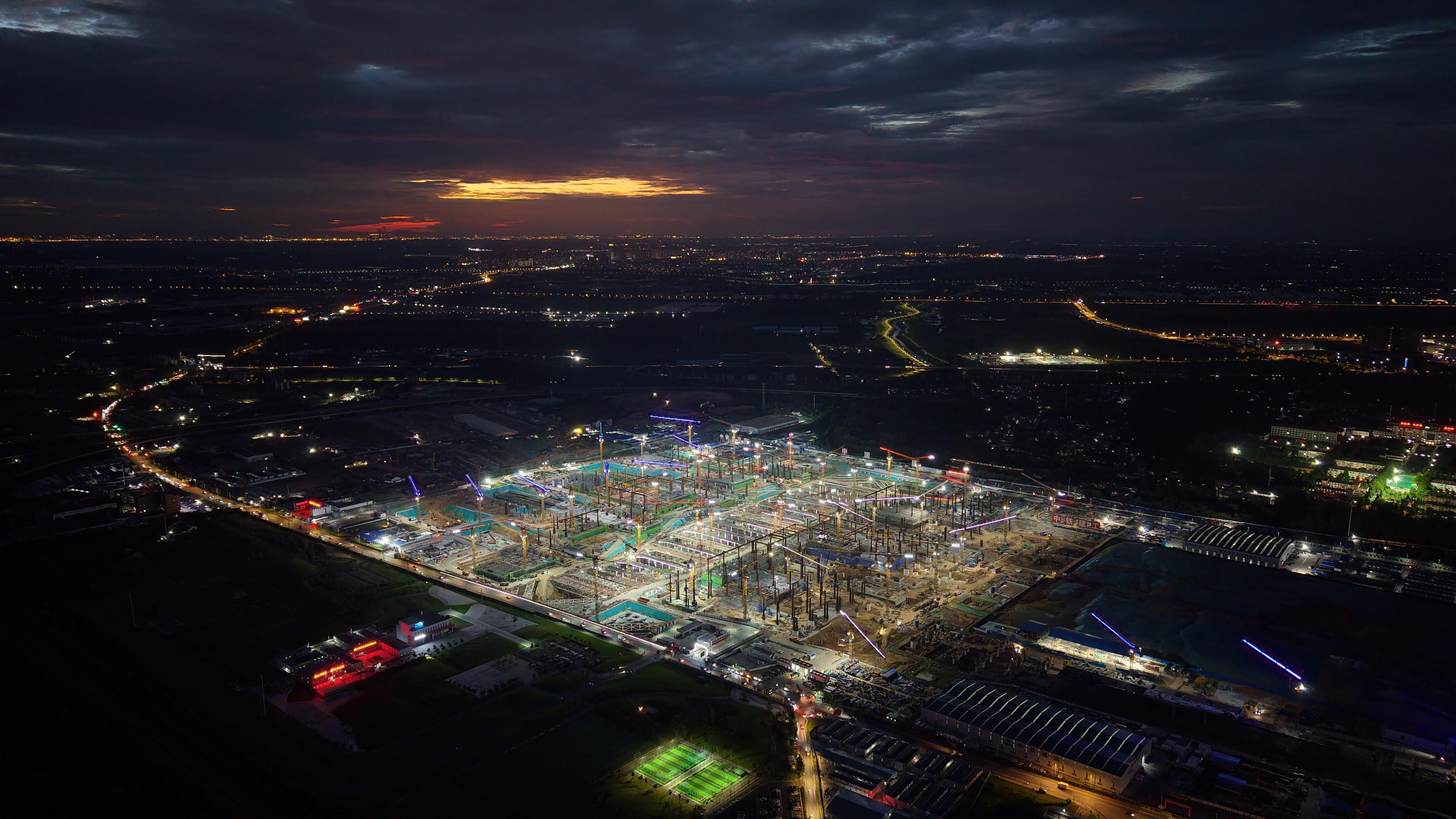 “后續(xù)建設中,項目將進一步推廣分布式光伏應用、管線預制化安裝等綠色低碳技術(shù),全面貫徹綠色建造標準。同時通過BIM正向設計、地面整平機器人等智能裝備與AI監(jiān)控技術(shù)的融合應用,施工效率預計可提升3-4倍?!编嵑暧暾f。