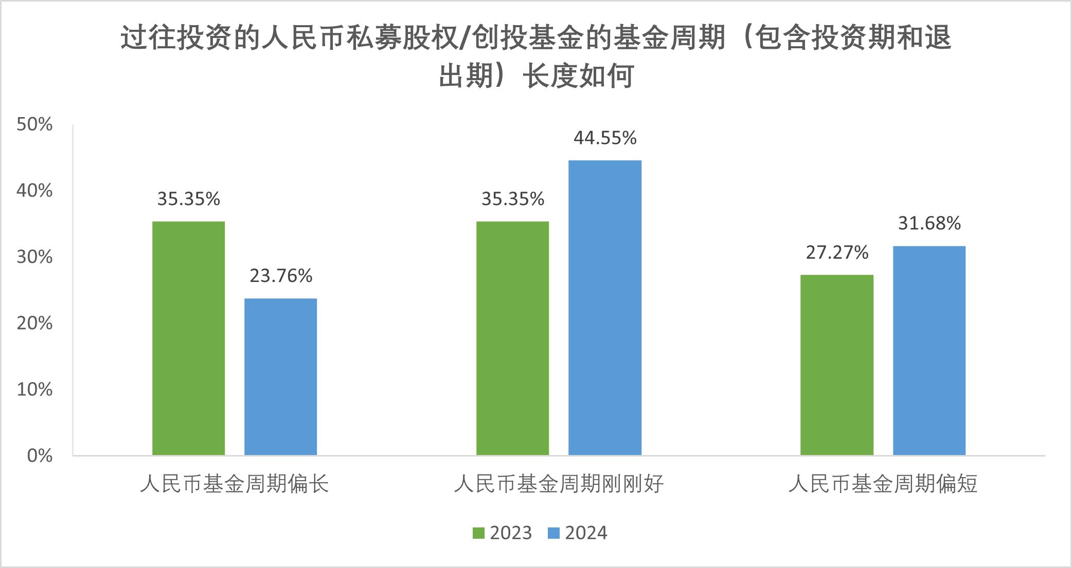 調(diào)研結(jié)果顯示,基金存續(xù)期以“4+3”模式為主,31.7%機構(gòu)認為基金整體周期偏短,23.8%則認為偏長,這種分化現(xiàn)象提示管理人在產(chǎn)品設(shè)計時需更精準匹配LP的期限偏好。當前基金大多投向硬科技等國家戰(zhàn)略性新興重點行業(yè),需更長的培育期以匹配技術(shù)轉(zhuǎn)化節(jié)奏,主流的“4+3”模板已較難適配,LP對S基金的關(guān)注增加也在一定程度上反映基金現(xiàn)存周期不足所導(dǎo)致的退出難問題。
